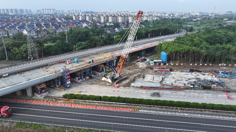 目前,滬武高速改擴建太倉境內各標段施工有序推進。圖為...